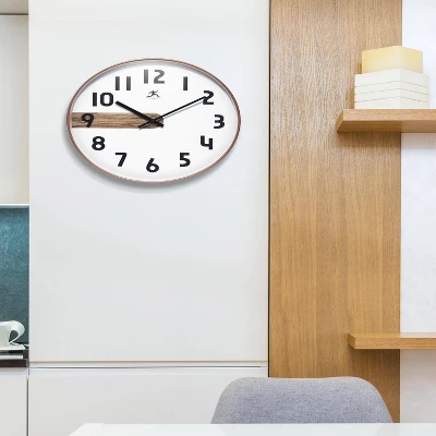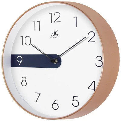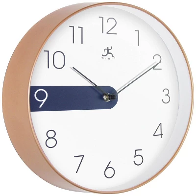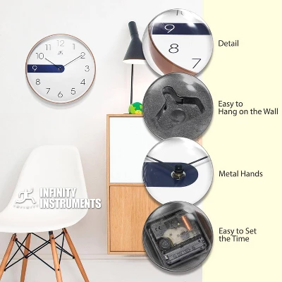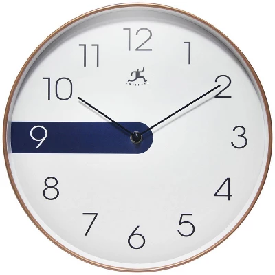 Our Copper Stripe wall clock is a 12” round wall clock that features a copper-colored outer case and an eye-catching blue stripe on the white clock face. With its easy-to-read numbers and clean look, you can hang this clock anywhere in your home!