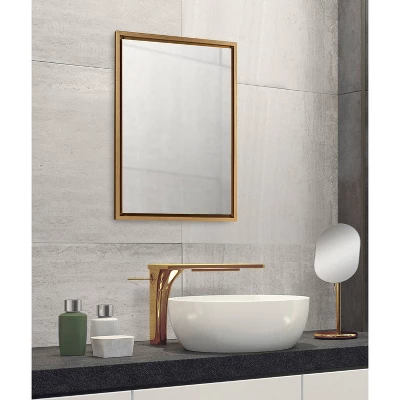 Add a sleek, glamorous accent piece in your home with this beautiful Evans Wall Mirror from Kate and Laurel. This mirror brings modern simplicity to your home, featuring a classic, rectangle shape and an elegant gold finish on its frame. What makes our Evans mirrors stand out is their unique, floating glass within the frame. The overall dimensions are 18 inches wide and 24 inches tall, providing a contemporary statement in your home that doesn’t overpower your other decor pieces. In fact, we recommend displaying the Evans Glam Wall Mirror in multiples, creating a dynamic triad or dual wall display. Use this mirror as a contemporary accent piece in any room of your home. Thanks to its modern, yet simple design, its easy to feature in any living room, bedroom, bathroom, entryway, or kitchen. Its rectangular shape also allows it to be easily displayed as a bathroom vanity mirror over a sink. The Evans Glam Wall Mirror is ready to go right out of the box in a matter of seconds, with no assembly required and metal D-ring hangers attached to the back for easy and secure installation.