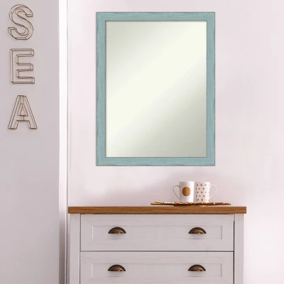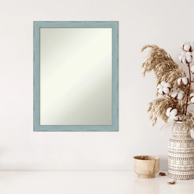 Give your home or office the finishing touch with this 100% real wood Non-Beveled Wall Mirror framed with the Sky Blue Rustic frame. Individually made using traditional custom framing techniques, it has the quality you would expect from your local frame shop. It holds its value with premium finishing that can be appreciated up close. Because of our attention to detail and focus on artistry, architects, interior designers, and homeowners alike choose this mirror to create beautiful living spaces.