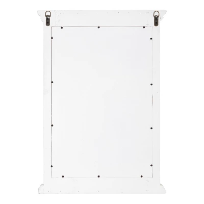 - RUSTIC DESIGN The unique, antique-inspired design of this mirror has a stepped crown moulding on the top and bottom, while the frame itself has a solid wood construction and one-of-a-kind, hand-distressed rustic white finish