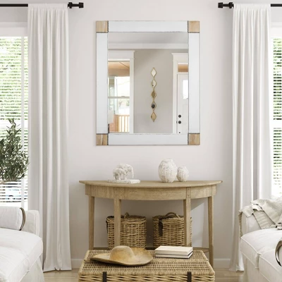 Featuring a frame of mixed white and distressed wood, this simple yet elegant mirror is the perfect addition to homes with a farmhouse, rustic, or shabby chic aesthetic.