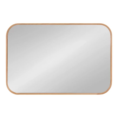 Decorate your home with a beautiful mirror that takes inspiration from Scandinavian design. The Nordlund wall mirror from Kate and Laurel features a lovely rounded rectangle shape, with a natural solid wood frame that toes the line between modern and minimalist. Its soft appearance is a welcome addition to any contemporary living room, bedroom, entryway, or dining room; you could even hang it above the sink as a bathroom mirror in your powder or master. The overall display dimensions of this mirror are 23 inches wide by 1.5 inches deep by 35 inches tall, creating a robust accent that is ready to hang in any room. Adding a mirror to your office or living area expands the space by spreading light sources and overall bringing depth and dimension inside. Hang it vertically or horizontally above a couch, entryway, sink, or console table with the convenient metal D-ring hangers securely attached to the back. The simplicity and sophistication of this functional wall mirror allows for blending into any room scene or decorative aesthetic.
