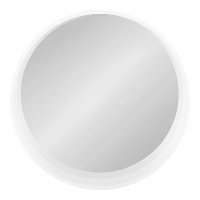 Create a beautiful, modern wall display in any room of your home with this beautiful Wheeler wall mirror from Kate and Laurel. This mirror offers your home a trendy, round shape, with a graduated profile depth that offers a chic catch-all for small items. Use this graduated shelf depth as an area to store keys, small plants, jewelry, and more! The sleek, modern white finish and round shape create a sophisticated wall decor item that catches the eye without overshadowing your other decor pieces. If you have a smaller space in your home that needs a bit of an expansion, a mirror is a great way to spread light sources and create dimension throughout your home. With metal D-ring hangers, you can hang this mirror in seconds in any modern living room, entry, bedroom, bathroom, or kitchen. If you want a unique, out-of-the-box wall display, purchase multiples and hang in a symmetrical or staggered formation. This mirror is the perfect way to bring any decor aesthetic into the chic 21st century.