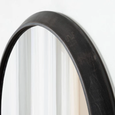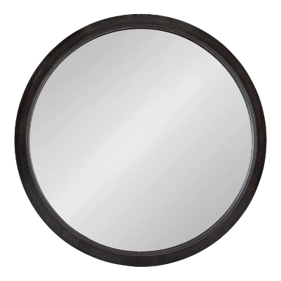 The Uldrich mirror takes rustic material and updates it for the 21st century. This wall mirror features a round shape and a distressed black finish, showcasing a modern take to farmhouse decor aesthetics. The frame was made of a robust blend of lightweight wooden material, making it as resilient as it is beautiful, plus allowing it to be easy to mount. This circular mirror’s overall dimensions are 24 inches wide by 24 inches tall, making it a stellar focal point on its own or in multiples as a dynamic wall display. Adding a mirror to your wall not only adds a decorative touch but makes your space feel more open and vibrant. Our Uldrich mirror looks excellent as a decorative statement in your living room, entryway, bedroom, or office. It also looks great as a bathroom mirror on a single or double vanity set up in your powder room or master. Hang the Uldrich round mirror in minutes with the convenient D-ring hangers attached to the back of the frame.