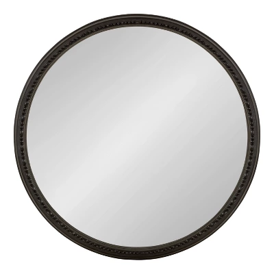 Create a wall display that updates farmhouse design for the 21st century with the Astele wall mirror. This lovely wall accent features a round shape and a refined, black finish to blend into various decor aesthetics. The Astele mirror also incorporates a textural, beaded edge surrounding the reflective surface, drawing your eye to this attractive focal point. The overall dimensions of the Astele are 24 inches wide by 2.5 inches tall by 24 inches tall, making it a can’t-miss decor highlight to showcase your style. Hanging this robust wood mirror makes your room feel more open and dimensional, drawing in light sources and enhancing the vibrancy of your space to make it feel more welcoming. Mount the Astele wall mirror on your mantle, over an entryway console, above a piece of furniture in your living room. You can even hang it as a bathroom vanity mirror during your next powder room refresh. To mount this stunning display piece, utilize the metal hanger attached to the back of the frame.