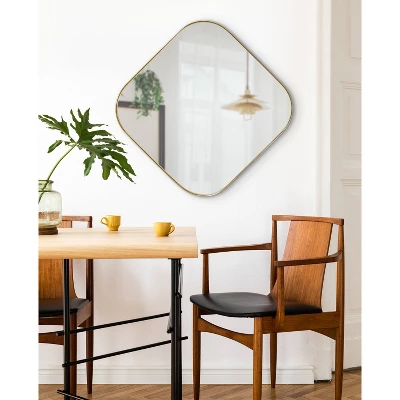 Showcase your personal style while increasing the vibrancy of your space with the Rollo mirror. Inspired by modern style, this mirror features a rounded square shape, giving it a soft look that is a welcome addition to any midcentury aesthetic. The metal frame has a gold finish that is perfect for a contemporary home. The resilient metal frame is fantastic for multiple years of display, its durability allowing you to move it from room to room according to season. The overall dimensions of this square mirror are 24 inches wide by 1 inch deep by 24 inches tall, making it a fantastic large element to incorporate as a focal point in your home. Adding a mirror as a decorative element in your space enhances its vibrancy by spreading natural light sources, not only making your home feel brighter, but more open and dimensional as well. It’s also fantastic for your next bathroom renovation, looking fantastic as a bathroom mirror above your vanity. To hang this mirror, use the keyhole hangers attached to the back of the frame.