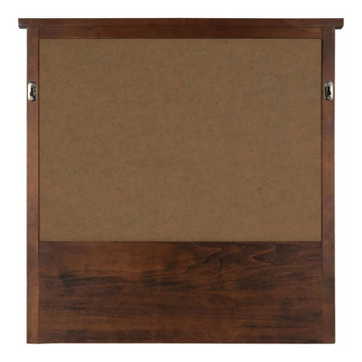 This organizational board combines rustic chic home décor with functionality. The outer dimensions measure 24 inches across and 24 inches high with a depth of 3.5 inches. The decorative board contains a 20.25 inch by 14.25 inch mirror to check you appearance one final time before leaving the house. (You look great!) The board also has three double metal hooks so your days of searching for your keys are over! The hooks are sturdy enough for full key chains or other odds and ends that you would like to hang. Also included are three pockets 7 inches across with a 1.5 inch lip to store your important mail, bills, dog leashes, or other accessories off of the top of your counter. The cubbies have metal label holders which you can customize however you would like. This functional board has sturdy wood construction with a rustic finish and two keyhole hangers on the back for easy display. This multi-functional wall hanging board is the perfect tool to organize to your office, kitchen, or entryway.