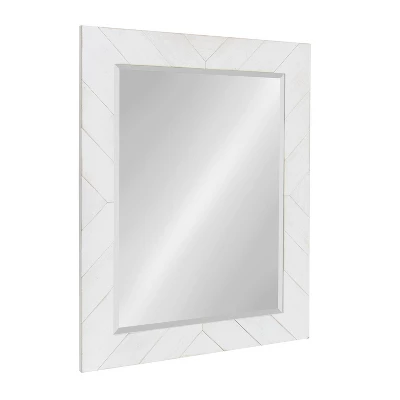 Bring rustic beauty into your home with this charming framed wood mirror. An update on the traditional wood framed vanity mirror, this accent mirror has a robust pieced wood frame surrounding a beveled mirror. This rustic chic mirror has metal d-ring hangers already attached to the back of the frame for both horizontal and vertical display options. This accent mirror will look gorgeous as an entryway mirror, featured above your sofa or mantle, or even above a sink in your bathroom as a vanity mirror.