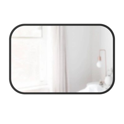- DECORATIVE: Hub’s black rubber rim not only adds to the sharpness of this mirror but also doubles as a bumper, making it perfect for high-traffic areas like entryways