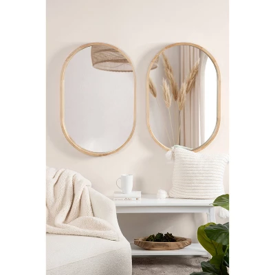 Looking to add some vibrancy to the darker corners of your home? Or are you trying to redecorate with a clean, modern style? Either way, the Hutton wall mirror is the perfect addition to your wall. Inspired by Scandinavian simplicity, the Hutton features a solid poplar wood frame with a natural finish, giving it that back-to-basics look. The Hutton also has an on-trend, contemporary capsule shape, inspired by modern geometry. It’s a subtle yet commanding focal point that looks beautiful in various spaces in your home. The overall dimensions of this oval mirror are 24 inches by 2 inches by 36 inches, making it fantastic as a decorative statement piece or as a bathroom mirror above your vanity. If you decide to decorate your home with this mirror, you’ll find that it opens your space and makes it feel larger, harnessing light sources to create brightness across your room. It’s 2-inch depth also draws the eye, creating a dimensional piece that is visually striking. This mirror hangs vertically and horizontally with metal D-ring hangers, making it a versatile wall mirror for any area of your home.
