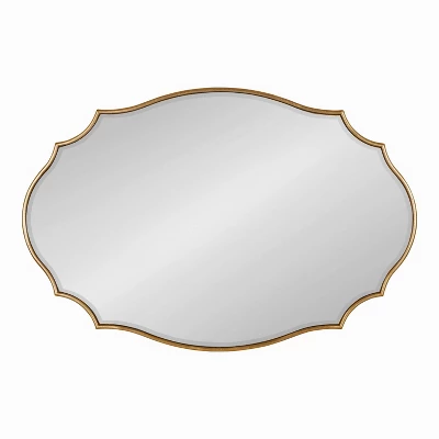 Embrace elegance and sophistication in this beautiful, scalloped edge mirror from Kate and Laurel. Designed with modern glam in mind, the Leanna Mirror takes inspiration from tasteful, elegant Moroccan forms, featuring a beveled edge and a decadent scalloped curvature. The quality gold leaf finish on the frame is applied by hand, giving each Leanna Mirror its own one-of-a-kind, glamorous look. Adding a mirror to your home spreads light through your smaller living spaces, creating a dynamic, vibrant area with plenty of dimension. This particular Leanna Mirror is 24 inches wide by 36 inches high, making it a beautiful decorative statement or even a bathroom vanity mirror. You can hang the Leanna Wall Mirror in seconds with our easy-to-use D-ring hangers attached to the back. The D-ring hangers also allow you to hang the Leanna Mirror both vertically and horizontally, depending on your preference and wall space. Create a beautiful wall display with multiple Leanna Wall Mirrors, showing off your personal style and chic, glamorous aesthetic.