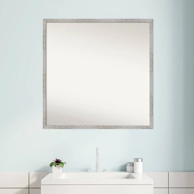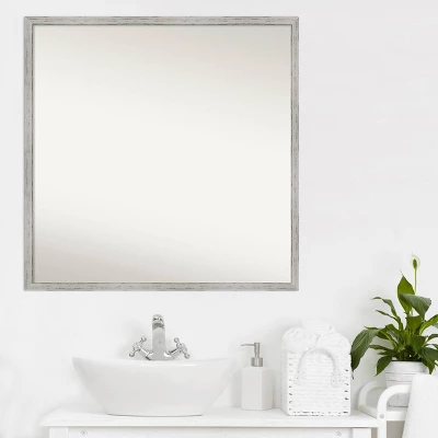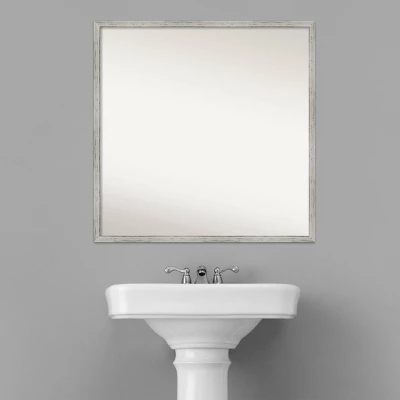 - MIRROR DETAILS: This mirror features premium glass for a clear, undistorted image and has a non-beveled surface to maximize the viewing area. The overall size of this bathroom mirror measures 27 x 27 inches, including the frame. Its reflective area measures 26 x 26 inches.