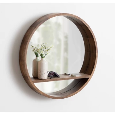 - ROUND MIRROR WITH SHELF: The Hutton Round Mirror includes a 4″ shelf for storing or displaying your favorite keepsakes