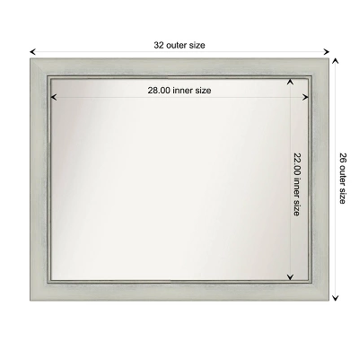 - MIRROR DETAILS: This mirror features premium glass for a clear, undistorted image and has a non-beveled surface to maximize the viewing area. The overall size of this bathroom mirror measures 32 x 26 inches, including the frame. Its reflective area measures 28 x 22 inches.