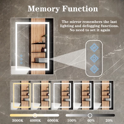 - –Memory: When the LED mirror is restarted after a power failure, it will return to the last use without having to adjust again.