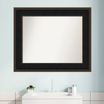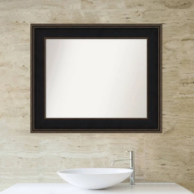 Give your bathroom the finishing touch with this 100% real wood Non-Beveled Wall Mirror framed with the Mezzanine Espresso frame. Individually made using traditional custom framing techniques, it has the quality you would expect from your local frame shop. It holds its value with premium finishing that can be appreciated up close. Because of our attention to detail and focus on artistry, architects, interior designers, and homeowners alike choose this mirror to create beautiful living spaces.