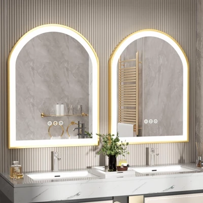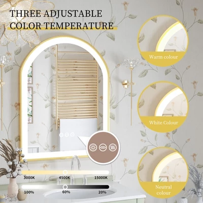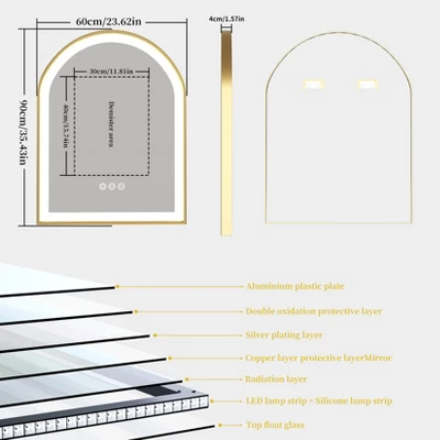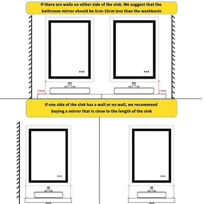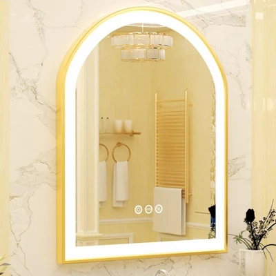 Innovative light up bathroom mirror, this features adjustable different setting, anti fog and memory function in one-kind. Exquisitely crafted with details, sanding to the edge and ultra-narrow edge for a more luxury look, blends nicely with different bathrooms makeovers. Aluminum frame with a brushed finish, anti-rust, making it perfect for any bathroom environment.