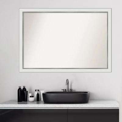 Give your bathroom the finishing touch with this Non-Beveled Wall Mirror framed with the Eva White Silver Narrow frame. Individually made using traditional custom framing techniques, it has the quality you would expect from your local frame shop. It holds its value with premium finishing that can be appreciated up close. Because of our attention to detail and focus on artistry, architects, interior designers, and homeowners alike choose this mirror to create beautiful living spaces.