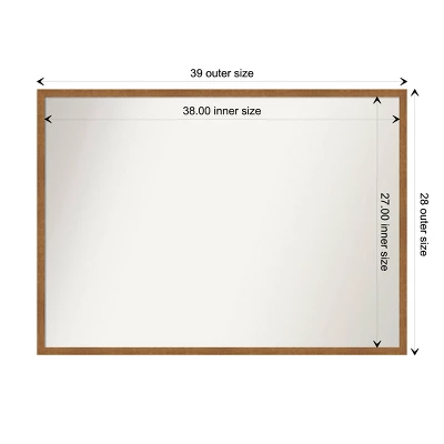 - MIRROR DETAILS: This mirror features premium glass for a clear, undistorted image and has a non-beveled surface to maximize the viewing area. The overall size of this wall mirror measures 39 x 28 inches, including the frame. Its reflective area measures 38 x 27 inches.