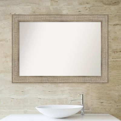 Give your bathroom the finishing touch with this 100% real wood Non-Beveled Wall Mirror framed with the Trellis Silver frame. Individually made using traditional custom framing techniques, it has the quality you would expect from your local frame shop. It holds its value with premium finishing that can be appreciated up close. Because of our attention to detail and focus on artistry, architects, interior designers, and homeowners alike choose this mirror to create beautiful living spaces.