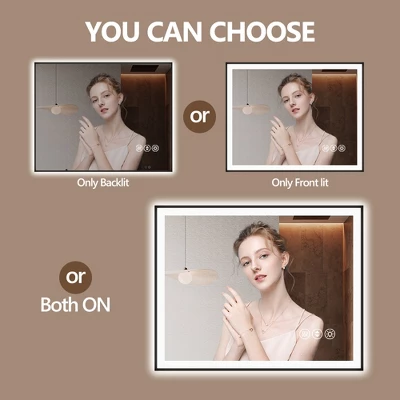 [Dimmable]: Long-press the power button to adjust brightness from 10% to 100%. Short-press the color temperature button to select 3000K warm white, 4500K neutral white, or 6000K daylight.[Unique Design]: Integrated mirror power switch and anti-fog button. The built-in anti-fog function eliminates the need for constant de-misting sprays. Anti-fog mode automatically shuts off after 1 hour for energy efficiency and safety.[Wall Switch Compatibility]: The wall switch can directly control the light and anti-fog functions. When power is restored via the wall switch after shutdown, the mirror resumes its last-used settings.[Safe & Durable]: UL-certified components with protective casing. LED lifespan: 50,000+ hours (45+ years at 3 hours daily use). Copper-free silver mirror with far lower corrosion rates than standard mirrors. Features 5mm tempered glass for shatterproof, explosion-resistant, and long-lasting safety.[Easy Installation & Packaging]: Improved packaging minimizes transport damage. Passed rigorous tests including drop, impact, high-voltage, and insulation tests. Includes mounting screws for effortless installation.Product Highlights