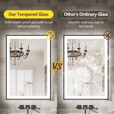 - [Safe & Durable]: UL-certified components with protective casing. LED lifespan: 50,000+ hours (45+ years at 3 hours daily use). Copper-free silver mirror with far lower corrosion rates than standard mirrors. Features 5mm tempered glass for shatterproof, explosion-resistant, and long-lasting safety.