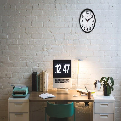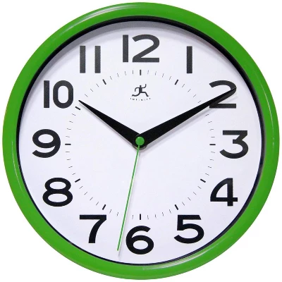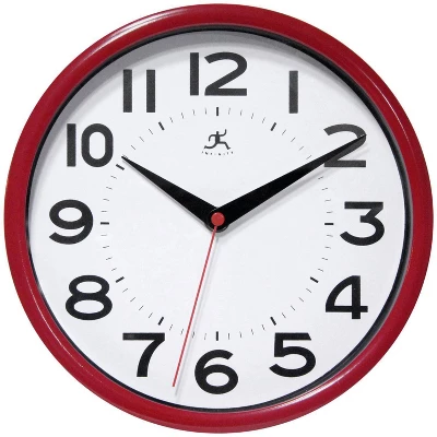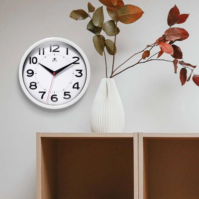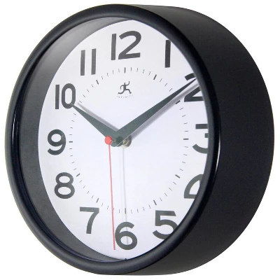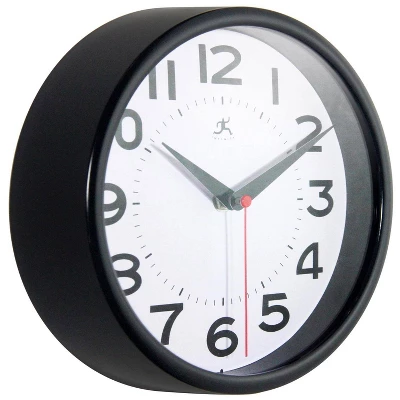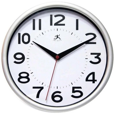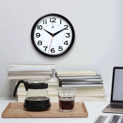 Keep track of time without disturbing co-workers by using this Metro resin analog wall clock. The silent hand movements ensure quiet operation to keep noise to a minimum, while the broad face and large numerals make this clock easy to read from afar. This Infinity Instruments Metro clock has an elegant design and sleek black case for easy matching.