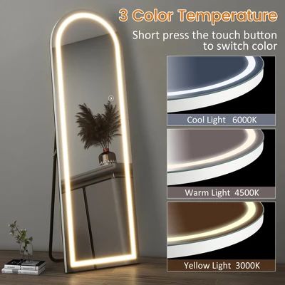 - 【MULTI-FUNCTIONAL LIGHTING】 The LED full length mirror has a smart touch button that allows you to easily switch between 3 different lighting options – yellow light, warm light, and cool light. Additionally, you can adjust the brightness of the mirror to your liking with just a long press of the button.