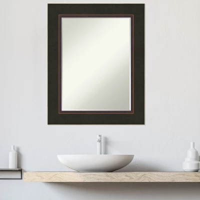 Give your bathroom the finishing touch with this 100% real wood Petite Bevel bathroom mirror. The Milano Bronze frame is a wide, espresso frame with bronze gold brushstrokes on its flat surface and bronze highlight lines on the inner and outer edges.. The frame is 3.5 in. wide and stands 1.25 in. off the wall. It’s Individually made using traditional custom framing techniques, it has the quality you expect from your local frame shop. It holds its value with premium finishing that can be appreciated up close. Because of our attention to detail and focus on artistry, architects, interior designers, and homeowners alike choose this mirror to create beautiful living spaces.