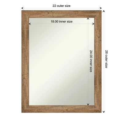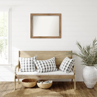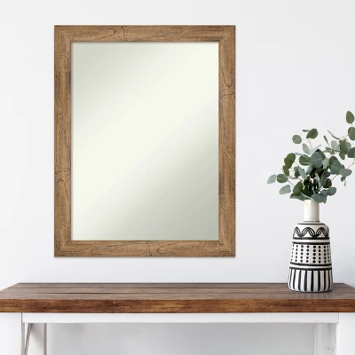 Give your home or office the finishing touch with this 100% real wood Non-Beveled Wall Mirror. The frame features a natural wood frame with a slight scoop and woodgrain variation showing through. The finish is warm light brown with grey, cream, and mauve tones.. The frame is 2 in. wide and stands 0.75 in. off the wall. Individually made using traditional custom framing techniques, it has the quality you would expect from your local frame shop.
