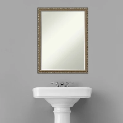 Give your bathroom the finishing touch with this 100% real wood Petite Bevel bathroom mirror. The Parisian Silver frame is an ornate, warm silver frame with dark pewter patina, accented by raised leaf pattern on the outer edge and fine beading on the inner edge.. The frame is 1.25 in. wide and stands 1 in. off the wall. It’s Individually made using traditional custom framing techniques, it has the quality you expect from your local frame shop. It holds its value with premium finishing that can be appreciated up close. Because of our attention to detail and focus on artistry, architects, interior designers, and homeowners alike choose this mirror to create beautiful living spaces.