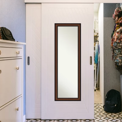 This full-length Non-Beveled Mirror framed in the Yale Walnut frame, complements your decor without the need for unsightly over-the-door brackets. Individually made using traditional custom framing techniques, it has the quality you would expect from your local frame shop. It holds its value with premium finishing that can be appreciated up close. Our On The Door Mirror has two hooks to hang directly on your door or wall without additional anchors or brackets. Hang it on the back of a closet, bedroom or bathroom door, or wall as a standard full-length mirror. Because of our attention to detail and focus on artistry, architects, interior designers, and homeowners alike choose this mirror to create beautiful living spaces.