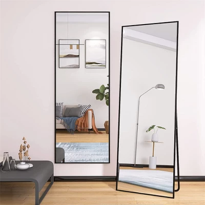 This mirror is an eye-catching addition to any modern decor home.Perfect to be used in bedroom, living room, dorm room or corridor. The mirror can simply lean against the wall. Dressing up before leaving home to start the day with the help of this high, elegance full-length mirror.Set up a space to check your look with this freestanding mirror, an excellent way to round out an empty corner. Its metal frame strikes a streamlined silhouette with a solid finish that pairs well with contemporary spaces and a variety of color schemes. The adjustable rear easel ensures you always find the perfect angle to view today’s outfit. It measures 64.17” H x 21.26” W x 1.57” D overall.