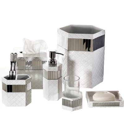 Give Your Bathroom A Touch Of Unbridled Elegance:Touch Of Sophistication!Our Quilted Mirror Collection Combines Timeless Style With Contemporary Patterns To Create An Upscale Look That Will Turn Your Bathroom’s Décor From Simple To Sensational. We’ve Combined A Truly Unique Quilted Pattern With Silver-like Mirrored Accents That Exude An Elegantly Clean Look That Complements Any Décor. Perfectly Sized, This Set Is Great For Any Bathroom. It’s Great For Smaller Spaces But Still Has The Presence That Fills Even The Grandest Bathrooms. Start Building Your Collection Piece By Piece And Create Bathroom Décor Worthy Of A Lifestyle Magazine Cover!Built To Last: This Isn’t Just Any Bath Set, It’s One Of The Most Durable Ones Around. We’ve Primarily Used High-grade Resin To Craft The Collection, Known For Its Incredible Lasting Properties. The Superior-quality Resin Doesn’t Easily Break Like Regular Plastic, And Has Zero Risk Of Corrosion Unlike Most Metals. So Even In The Humid Conditions Of Your Bathroom, You’re Guaranteed Of A Bath Set That Will Remain In Great Condition. A Couple Of Years Down The Line And Every Piece Will Look As Breathtaking As The Day You Got It!Here’s Why You’ll Love The Quilted Mirror Collection: Predominantly White Styling That Complements Any Décor. Mirrored Accents Add An Unmistakably Sophisticated Touch. Made Using High-grade Resin To Ensure Maximum Durability. Perfectly-sized To Fit Even Tight-spaced Bathrooms.Unique Design Makes It A Great Gift For Both Men And Women.