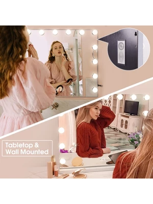 Fenchilin has created a series of sophisticated vanity mirrors. This series features vanity mirrors with lights, Hollywood mirrors and makeup mirrors. Fenchilin is a trustworthy brand that caters to the customer’s desires. With delight and pride, we highly recommend this white Hollywood vanity mirror to you. This mirror has been modeled exactly in the style of a Hollywood mirror that enables you to have the experience of how superstars do their makeup backstage, making it one of the best gifts for make-up lovers. Additionally, it’s size is perfect to be placed on tabletops, making it a space-saving option. In addition, it’s base is detachable and there are holes on the back for nails making it also able to be wall mounted.