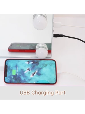 - BLUETOOTH SPEAKER AND USB CHARGING PORT: You are able to connect your phone to the mirror via Bluetooth and listen to music while doing makeup. And there is also a USB port on the right side for you to charge your phone.