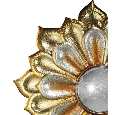 Make an entrance, or an exit with this tasteful gold-tone mirror hung on your wall. Constructed from metal and acrylic with a gold finish, this mirror is shaped like a flower for a unique accent piece. Hang this mirror in your entryway to take the last looks as you leave the house, or place it in the office washroom for a decorative touch. This gold-tone mirror comes to you ready to hang.