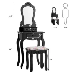 Tangkula Vanity Table Set W/Detachable Mirror & Stool Black/White