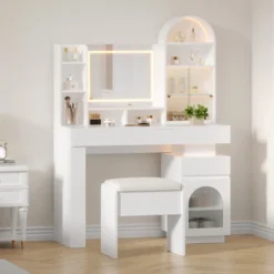 43.3″ Modern Vanity Table Set With Flip-Up Mirror, LED Lights And Storage – ModernLuxe