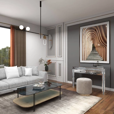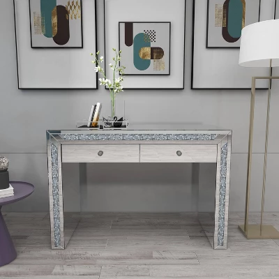Bring a finishing touch to your home with an inviting appeal with this console table. A sturdy and long lasting construction for a years of enjoyment. Get organizing with this mirror console desk and add a dash of sparkle to any of your home spaces. Designed with rubber stoppers to prevent scuffing and sliding. This item ships in 1 carton. Consists of 2 drawers for 15 lbs total storage capacity. Suitable for indoor use only. Maximum weight limit is 100 lbs. Glam inspired.
