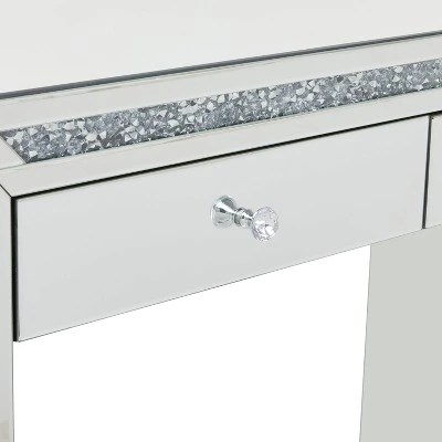 - Precisely cut glass mirrors and rhinestone accent outline details adorn this desk for a grand and polished look