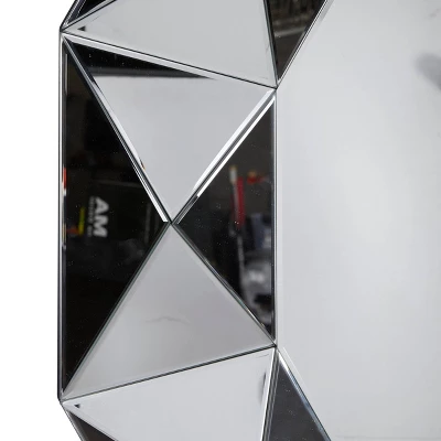 Hang this decorative mirror above a mantel or end table for a balanced look. This item ships in 1 carton. Fully-mirrored reflective beveled glass. Can be hung vertically using the D-rings on the back; nails and screws not included. Suitable for indoor use only. This item ships fully assembled in one piece. This is a single silver colored entryway mirror. Glam style.