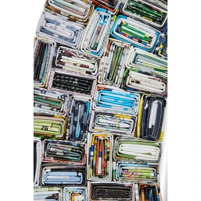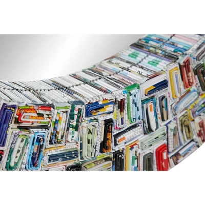 - •One of a kind piece individually folded and rolled pieces of recycled paper from old colorful magazines, then placed and glued into a symmetrical pattern, and lacquered for a sealed finish around the reflective circular mirror