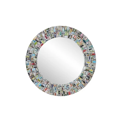 - •Our colorful wall mirror features a recycled paper frame, glass center, and MDF wood backing