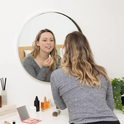 Hamilton Hills offers a modern round mirror that is sure to elevate any room. This 24″ floating glass mirror is framed by a polished silver metal frame and recessed into the frame. Comes with reinforced D-ring hanging clips and wall hardware. Crafted with premium materials, this mirror is made to strict trade-secret standards and passes a rigorous 8 point inspection. Brushed metal finish and sophisticated design make this mirror perfect for any home.