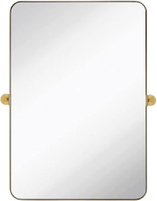 Hamilton Hills 24×36 inch is Brushed Gold Metal Framed Mirror, it is Rounded Corner Rectangular Frame with Tilt Mirror Brackets, SOPHISTICATED DESIGN: One of our Best Sellers is now available in a tilting angled design. 24″ x 36″ inch mirror surrounded by a 1″ deep gold metal frame and mounted to the wall with our pivot adjustable wall brackets. A sleek, modern, clean, silver backed glass mirror. A floating design suspended by our adjustable rotating clamps.