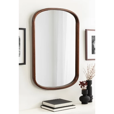 The Kate and Laurel Talma mirror features a beautiful dark walnut finish that adds a touch of elegance and sophistication to your space. Crafted with the utmost care, the mirror boasts a solid poplar wood frame that ensures durability and longevity. The rounded frame profile adds to the mid-century charm, making it a perfect fit for a variety of interior styles, including modern, contemporary, and traditional. Not only is this mirror visually appealing, but it also serves a practical purpose. Hang it in your living room, bedroom, or entryway to create an illusion of a larger space, and to effortlessly check your appearance before heading out. The Talma arched oval wall mirror is designed to make your home feel brighter and more spacious. Its rounded shape adds a touch of uniqueness to your wall decor, making it a focal point in any room. The mirror features convenient metal hangers to be hung vertically or horizontally to suit your preference. This exquisite mirror, measuring 24 inches wide by 36 inches high, is a stunning addition to any home decor. This mirror combines organic forms with a delightful natural woodgrain, ensuring that you get a stunning modern accent.