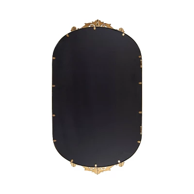 The Arendahl wall mirror brings a brilliant and decadent accent to any traditional home design. This wall mirror features a baroque-inspired design, with a resin garland crown cascading down an iron capsule frame. The antique gold finish brings it together as a vintage piece to display anywhere in your traditional home seeking additional light and elegance. Due to its hand-finished craftsmanship, each piece may vary in appearance. Showcase it in your living room, bedroom, entryway, bathroom vanity, or dining room for an elegant, conversation-starting focal point. Use the fabulous Arendahl wall mirror to bring dimension to your living spaces, opening up the area, and illuminating the darker corners. Proudly exhibit the Arendahl mirror on its own or in multiples, measuring 23.75 inches wide by 41 inches tall, providing enough space to create a fantastic wall accent. This framed mirror is also easy to hang, with a metal keyhole wall hanger and two sawtooth hangers discreetly and securely attached to the back. There’s no better way to bring an elegant, classic design aesthetic to your home than with this beautiful accent mirror. It’ll dazzle your guests and create a permanent statement piece for your living space.