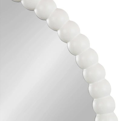 - Modern Circle Mirror: This round white mirror has a trendy shape, satin white finish, and fun details that draw the eye and blend into various decorative styles
