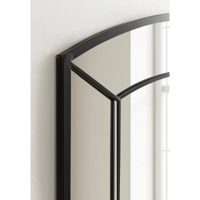 Illuminate the darker corners and closed-off spaces of your home with help from the Gervais window mirror! This large statement mirror blends modern design with traditional aesthetics, featuring a wide arched shape and a decorative overlay for a grand look. This large mirror has a frame and windowpane overlay crafted from rich iron in a classic satin black finish. The Gervais’ overall dimensions are 36 inches wide by 1 inch deep by 27 inches tall, creating a commanding presence that sets the tone of your wall decor with an attractive focal point. Using a piece of transitional decor like the Gervais emphasizes your unique style while capturing and enhancing the light of a room, making it feel more open and dimensional. This arched wall mirror serves your home well as living room, bathroom, entryway, or even bedroom decor for a cozy and inviting area. Or, make a statement above your fireplace mantel with this modern yet timeless mirror. To hang this decorative wall accent, use the metal D-ring wall hangers attached to the back of the Gervais’ large frame.